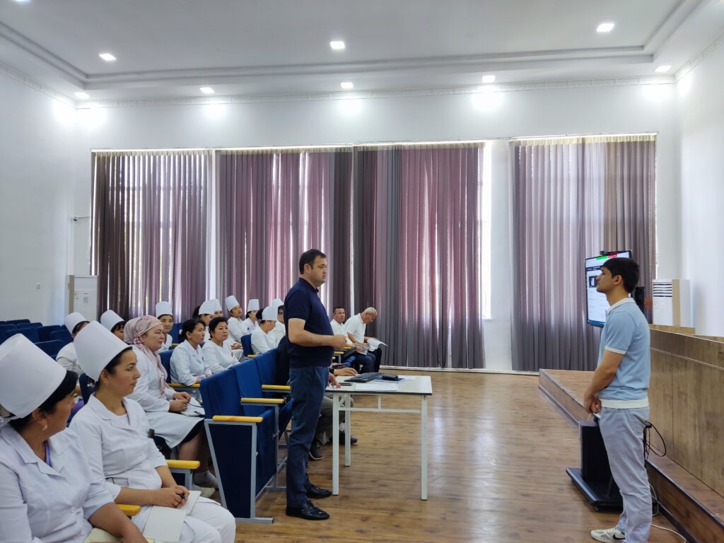 Muhtaram Prezidentimizning belgilab bergan topshiriqlari asosida kardiologiya, endokrinologiya va onkologiya yo‘nalishlari bo‘yicha aholini skrining tekshiruvidan o‘tkazish jarayoni davom etmoqda. Shu munosabat bilan 2 may kuni RIKIATMning Qashqadaryo viloyati bo‘yicha ma’sul kuratori Sh.Doniyorov, ma’sul xodim A.Kim hamda tuman kuratori R.Raxmonov Dexqonobod TTBga qarashli tibbiyot muassasalarida o‘tkazilayotgan yurak-qon tomir kasalliklari skrining jarayonlari va faoliyati bilan tanishish […]