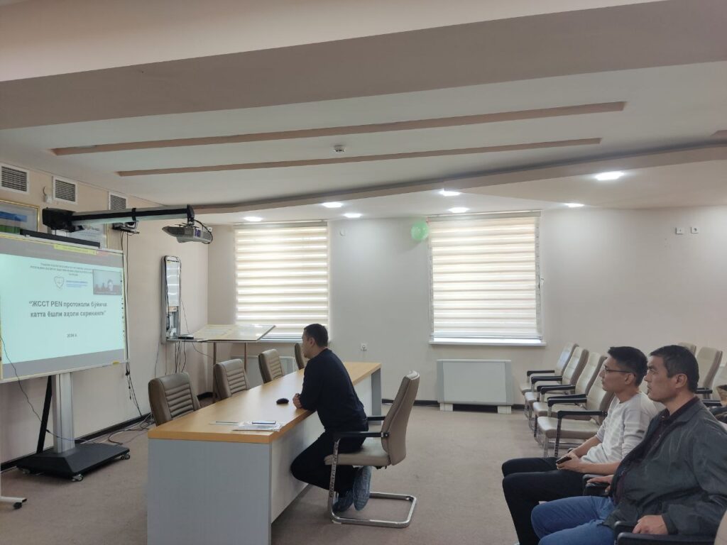 9 noyabr kuni RIKIATMning Qashqadaryo viloyati bo‘yicha ma’sul kuratori Sh.Doniyorov tomonidan Mirishkor TTBga qarashli barcha OP,OShPlardagi skrining tekshiruvlari va sog‘lomlashtirishga ma’sullar ishtirokida “Zoom” platformasi orqali videokonfrens aloqa shaklida yig‘ilish o‘tkazildi. Unda tumanda olib borilayotgan skrining tekshiruvlari va sog‘lomlashtirish holatlarining statistik ko‘rsatkichlari taxlil qilinib, mavjud kamchiliklar bo‘yicha barcha OP,OShPlar ma’sullariga alohida topshiriq berildi. Ushbu videokonfrens aloqa […]